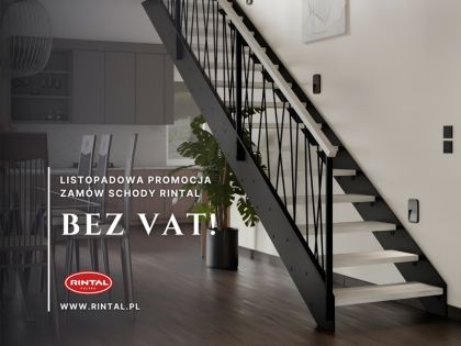 Marzysz o schodach, które będą ozdobą Twojego domu? Teraz to idealny moment – w listopadzie zyskujesz rabat równy wartości 8% podatku VAT na wszystkie modele schodów zamówione z balustradami i z montażem!Wybierz spośród dziesiątek eleganckich materiałów i kolorów.Postaw na perfekcyjne dopasowanie do wnętrza.Zyskaj profesjonalny montaż i najwyższą jakość, z której słynie Rintal.Nie czekaj – taka okazja zdarza się rzadko i trwa tylko do końca listopada!Skontaktuj się z naszymi doradcami – jesteśmy dostępni w całej Polsce.www.rintal.pl k.prabucka@rintal.pl